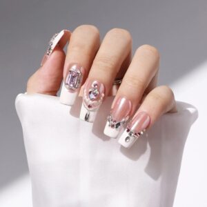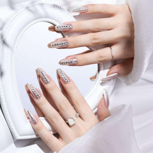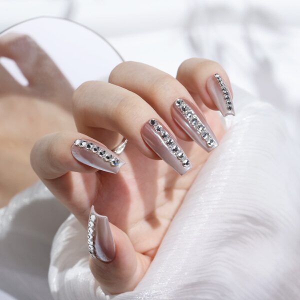 Be the first to review “Medium Coffin-Shaped Nude Gradient Smudged False Nails Full Swarovski Crystals Decor Handmade Press-On Nails”
